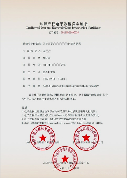 平台依托国家知识产权局权威资源和四川省知识产权公共服务体系,采用区块链时间戳、海量学术数据库和AI智能比对技术,为原创作品、学术论文、科研成果等提供 权威确权、快速维权和价值转化 的全链条解决方案。