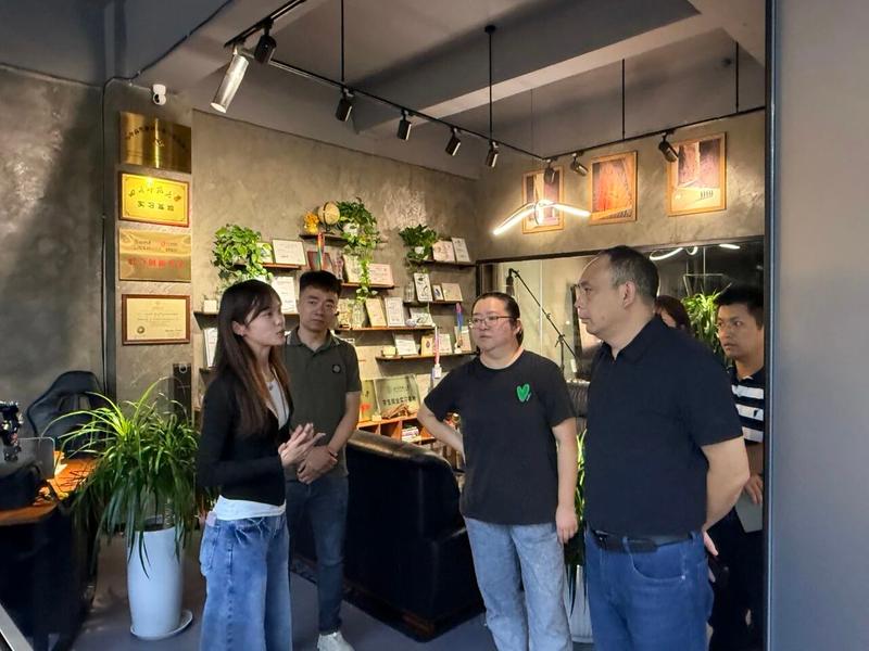 在狮山空间的入园企业办公区,调研团队与各企业负责人进行了面对面交流。他们细致询问企业的主营业务、技术研发进展、市场拓展情况以及当前面临的发展瓶颈,结合四川师范大学的学科优势与资源条件,为企业提供针对性建议,并鼓励企业加强与学校相关院系的产学研协作,充分利用科技园平台对接政策资源与产业链伙伴。